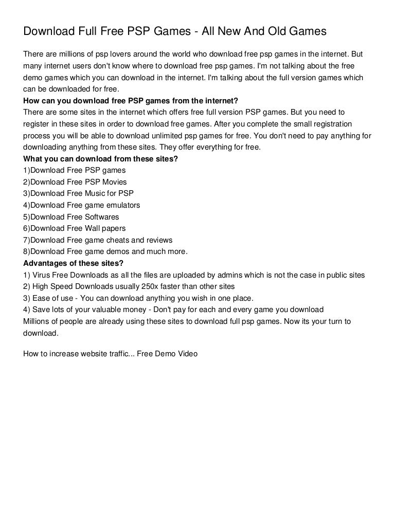 As long as you have a computer, you have access to hundreds of games for free. You can develop your own homebrew. Some games are timeless for a reason. I know that you can put the original mario game from the gameboy and other old systems on the psp. Crash bash psp minis 10 years ago i might start looking here:/www.amazon where have you looked? If you have a new phone, tablet or computer, you're probably looking to download some new apps to make the most of your new technology. I was wondering if anybody knows how to do that and if you could tell me. From mmos to rpgs to racing games, check out 14 o. I just got a psp and would like to know what games are good. Check out our favorite games, including entries in the god of war, ratchet & clank, and grand theft auto series. Gaming is a billion dollar industry, but you don't have to spend a penny to play some of the best games online. Short for "application," apps let you do everything from listening to music to syncing your phone to you. I just got a psp and would like to know what games are good.